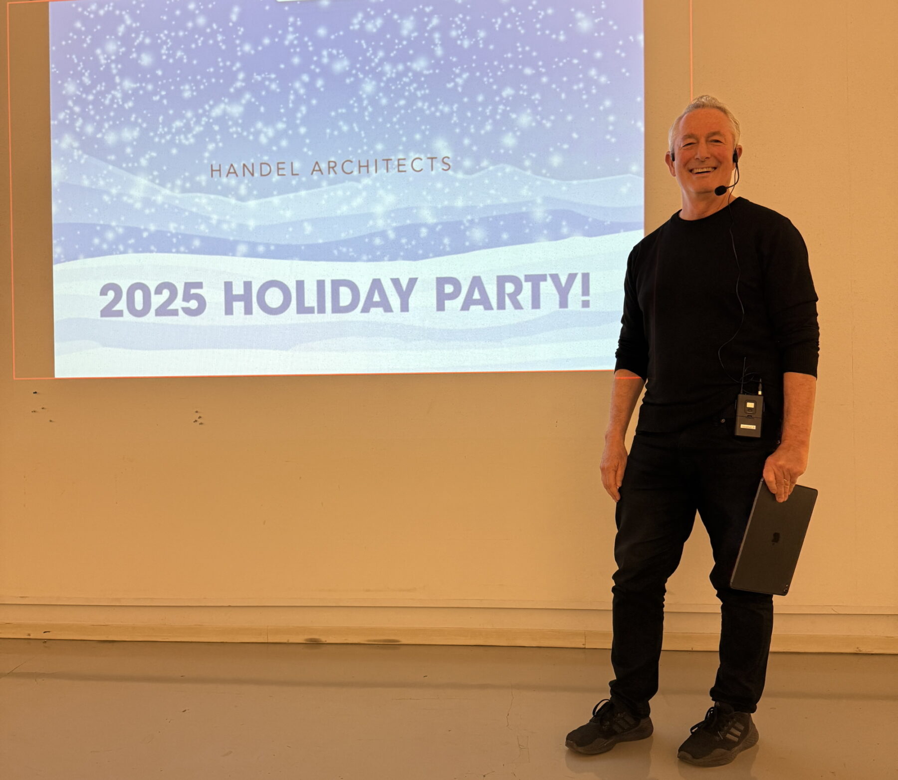 Handel Architects celebrated the 2025 festive season by gathering all of our offices for our annual end-of-year presentation, followed by the New York office's holiday party. Gary Handel kicked off the celebrations with a slideshow showcasing the Handel community’s personal and professional accomplishments, adorable baby photos, and funny team pictures. Following the presentation, the New York office ventured over to our holiday party for a lively evening filled with delicious food, dancing, and merriment.