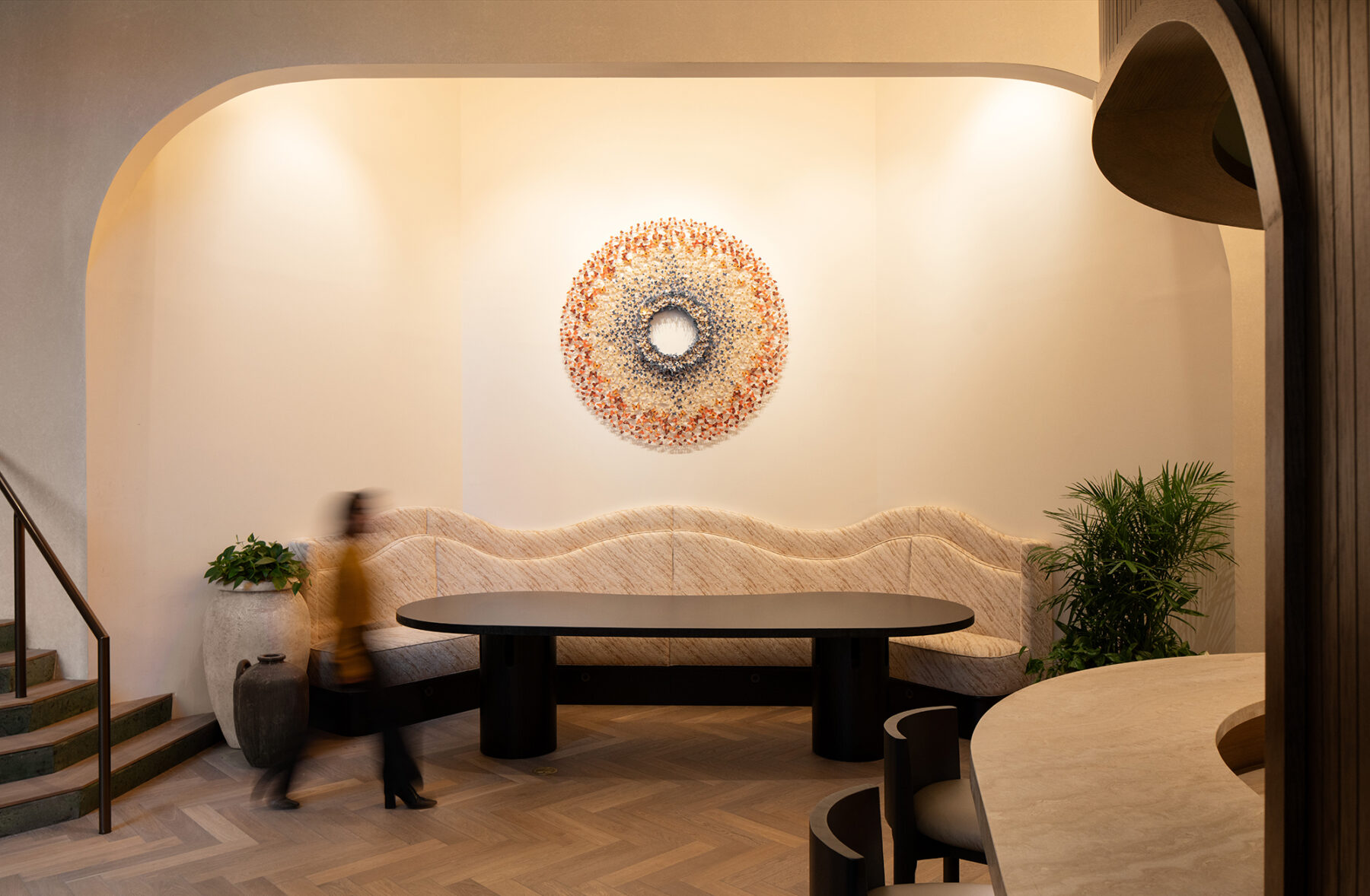 Interiors approach is characterized by unconventional geometries and bold material combinations.